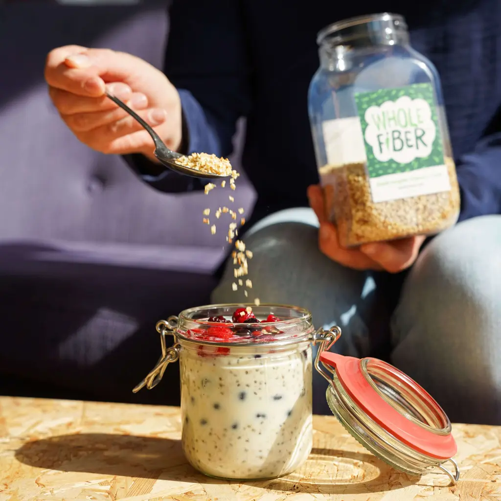 - Voeg WholeFiber toe aan yoghurt, havermout of smoothies voor een vezelrijk ontbijt